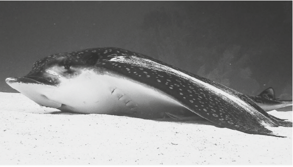 Eagle rays have unique patterns of rings or spots in their pelvic fins. Get an image or video of the pelvic fins or the area near the tail. This will help us identify each individual. This is the most important type of photo for our database
